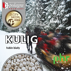 Poznańska Hodowla Roślin Sp. z o.o. - zgłaszający i producent. Kulig to wczesna odmiana łubinu białego o wysokim i stabilnym plonowaniu. Nasiona są niezwykle bogate w białko, co pozwala uzyskać imponujący plon białka ogólnego z hektara - nawet do 1,5 tony! Ten wysoki poziom białka w połączeniu z minimalną zawartością alkaloidów, gwarantuje doskonałe właściwości paszowe. Nasiona mogą być także wykorzystane do produkcji wartościowego oleju, ze względu na zbalansowany skład nienasyconych kwasów tłuszczowych. Kulig plonuje wysoko i stabilnie, co zostało potwierdzone w badaniach rejestrowych (111% wzorca COBORU) oraz jest bardzo odporny na fuzaryjne więdnięcie i antraknozę.