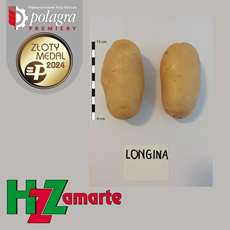 HODOWLA ZIEMNIAKA ZAMARTE Spółka z o.o. Grupa IHAR - zgłaszający i producent. Longina – pierwsza polska odmian ziemniaka do produkcji frytek zaakceptowana przez profesjonalnego producenta. Longina, jak sama nazwa wskazuje, tworzy duże, owalno-podłużne bulwy, wyrównane pod względem wielkości, o bardzo płytkich oczkach. Wyróżnia się doskonałymi parametrami jakości, co pozwala na wysmażanie frytek o jasnej barwie. Longina jest ponadto łatwa w uprawie towarowej. Krótki okres wegetacji tej odmiany umożliwia fabryce wczesne rozpoczęcie kampanii.