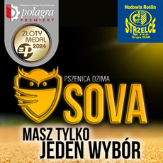 HODOWLA ROŚLIN STRZELCE Sp. z o.o. Grupa IHAR - zgłaszający i producent. Kluczową cechą odmiany SOVA jest połączenie wysokiego oraz stabilnego potencjału plonotwórczego z wysokim poziomem zimotrwałości, co zapewnia duże bezpieczeństwo w uprawie. Należy do grupy odmian niskonakładowych i charakteryzuje się wybitnym poziomem odporności na choroby. Posiada bardzo dobrą odporność na wyleganie oraz najwyższą odporność na porastanie ziarna. Posiada podwyższoną tolerancję na niskie pH gleby. Dedykowana jest do uprawy na stanowiskach dobrych, mozaikowatych oraz słabszych. Posiada bardzo dobre parametry skupowe i jakościowe.